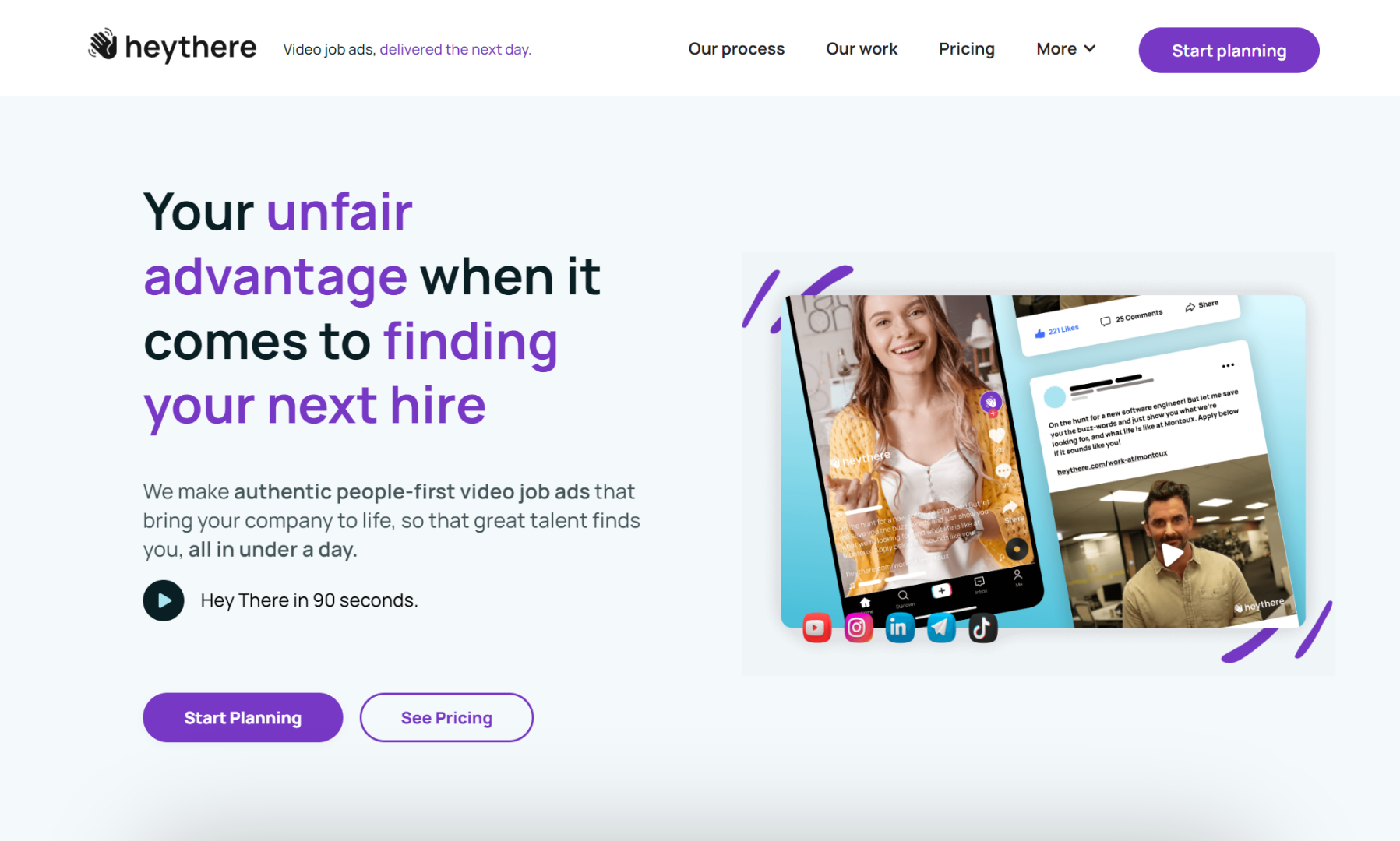 Website refresh for a company providing a better way to attract talent through bespoke video job listings.